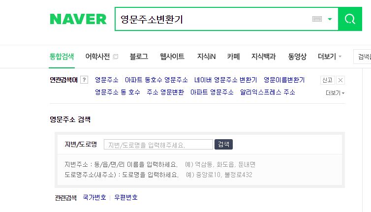 (우측상단의 사진참고) 영문주소변환기를 사용해